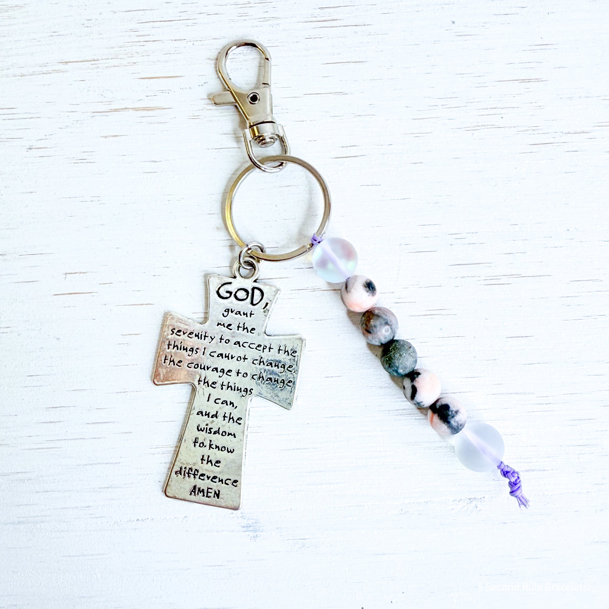 Handmade in our Companion Style, this bracelet includes our signature Pink Zebra Jasper, a shimmering Aura bead, and a stainless-steel Praise the Lord charm—paired with our exclusive commemorative 5SRB charm engraved with the year 2025.