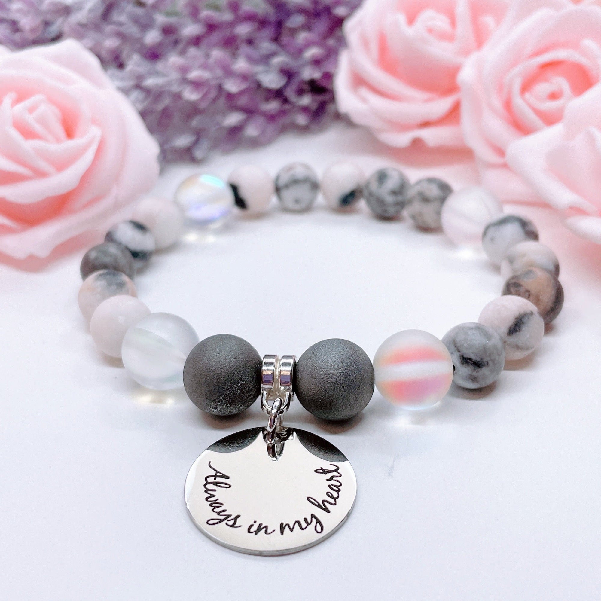 A Piece of my Heart is in Heaven Companion Charm Bracelet Rose Quartz
