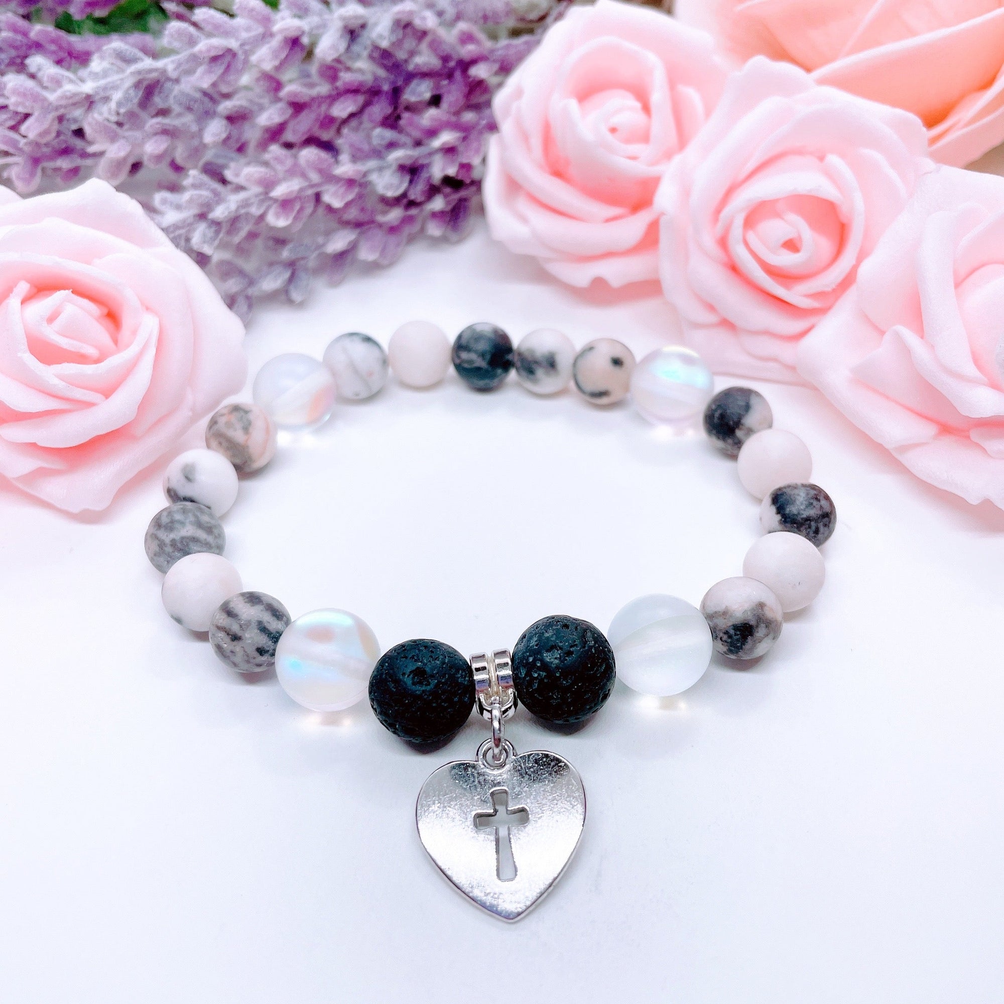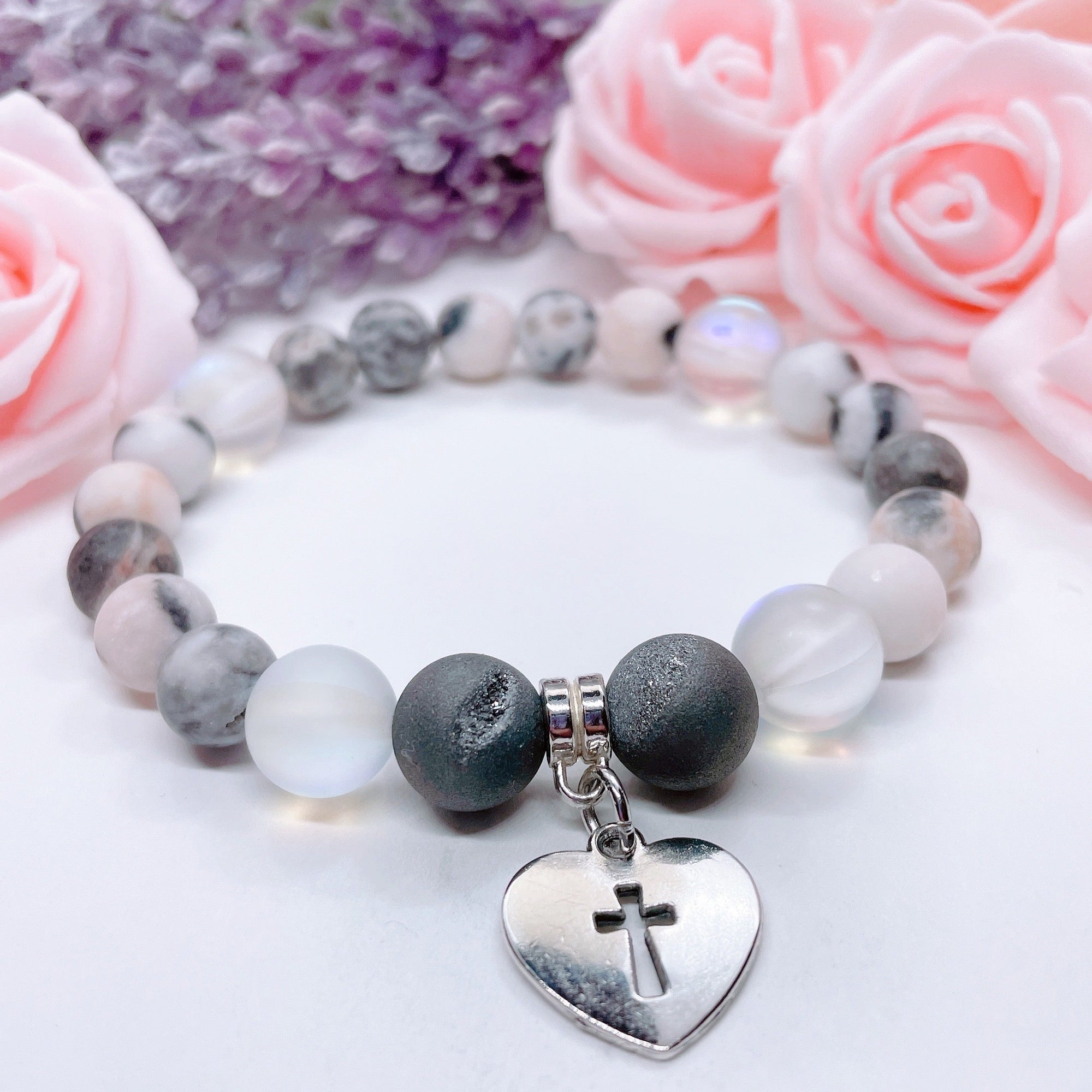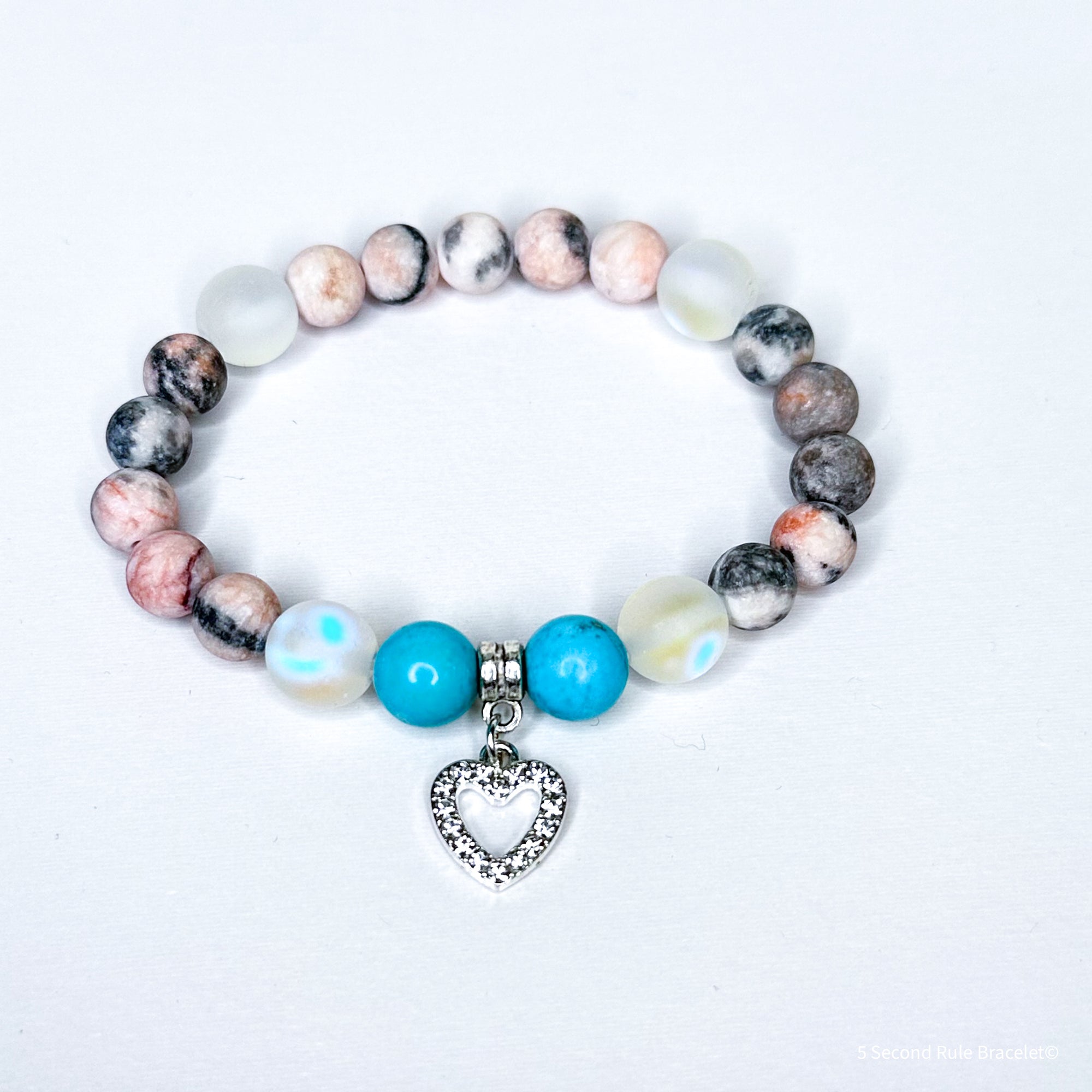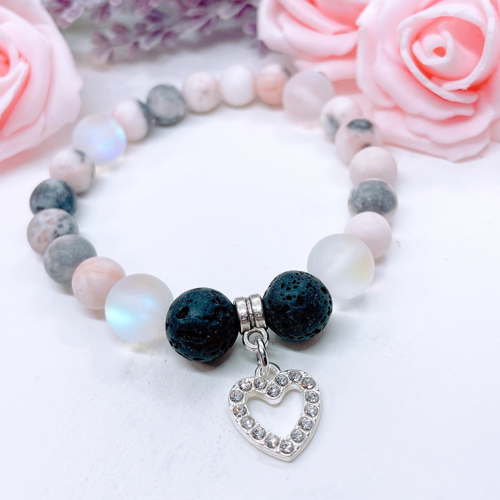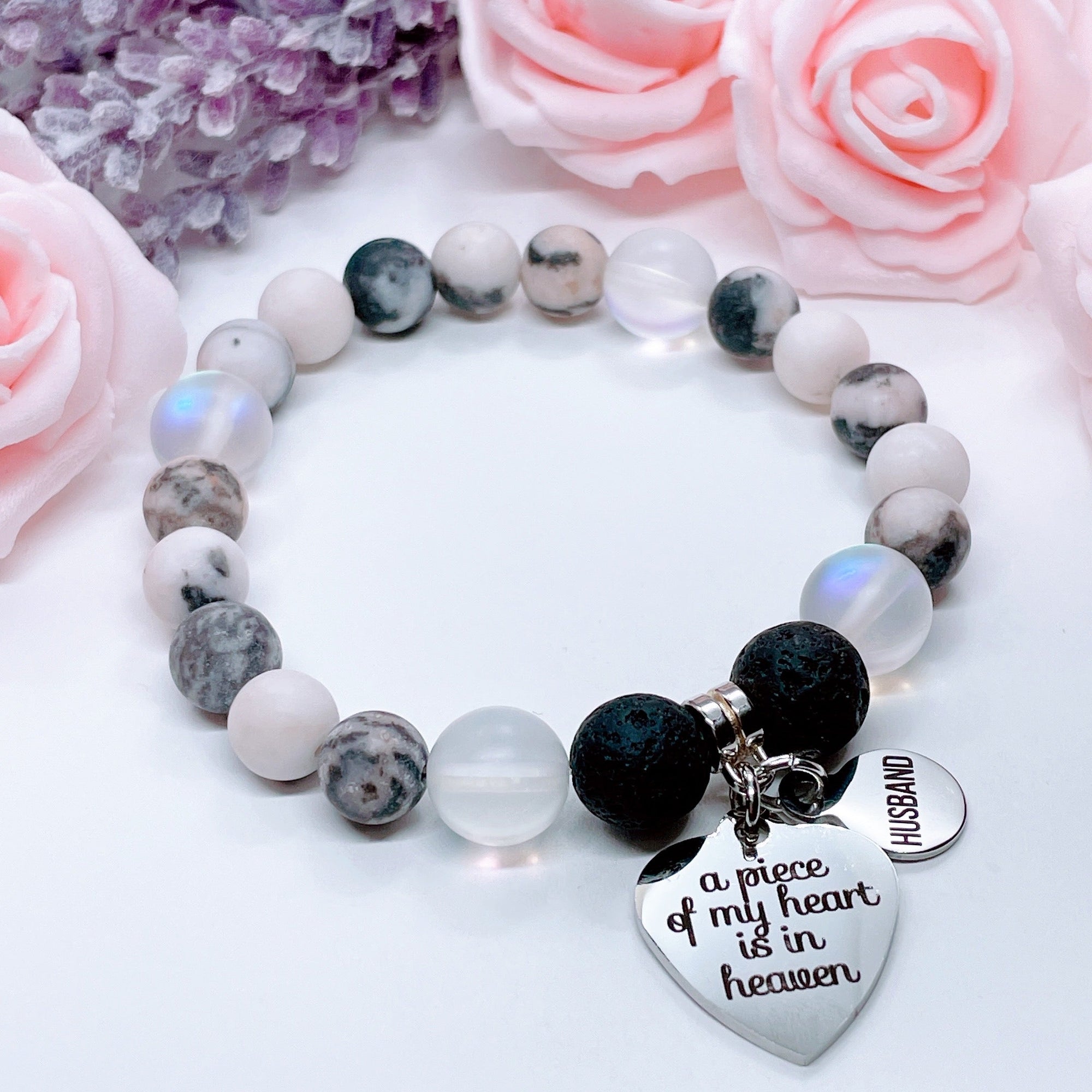 Husband: A Piece of my Heart is in Heaven Heart Classic Charm Bracelet Rose Quartz
