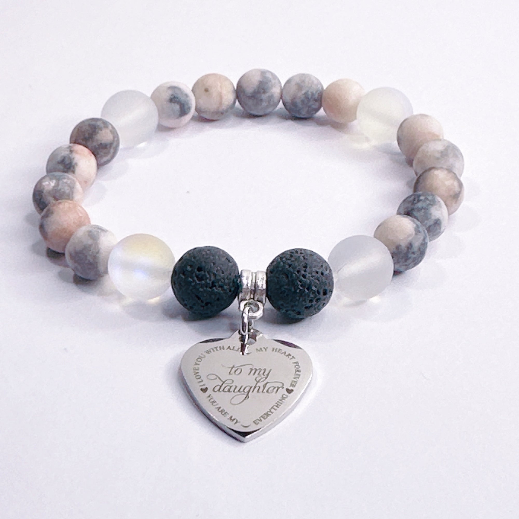 To my Daughter Classic Charm Bracelet Rose Quartz