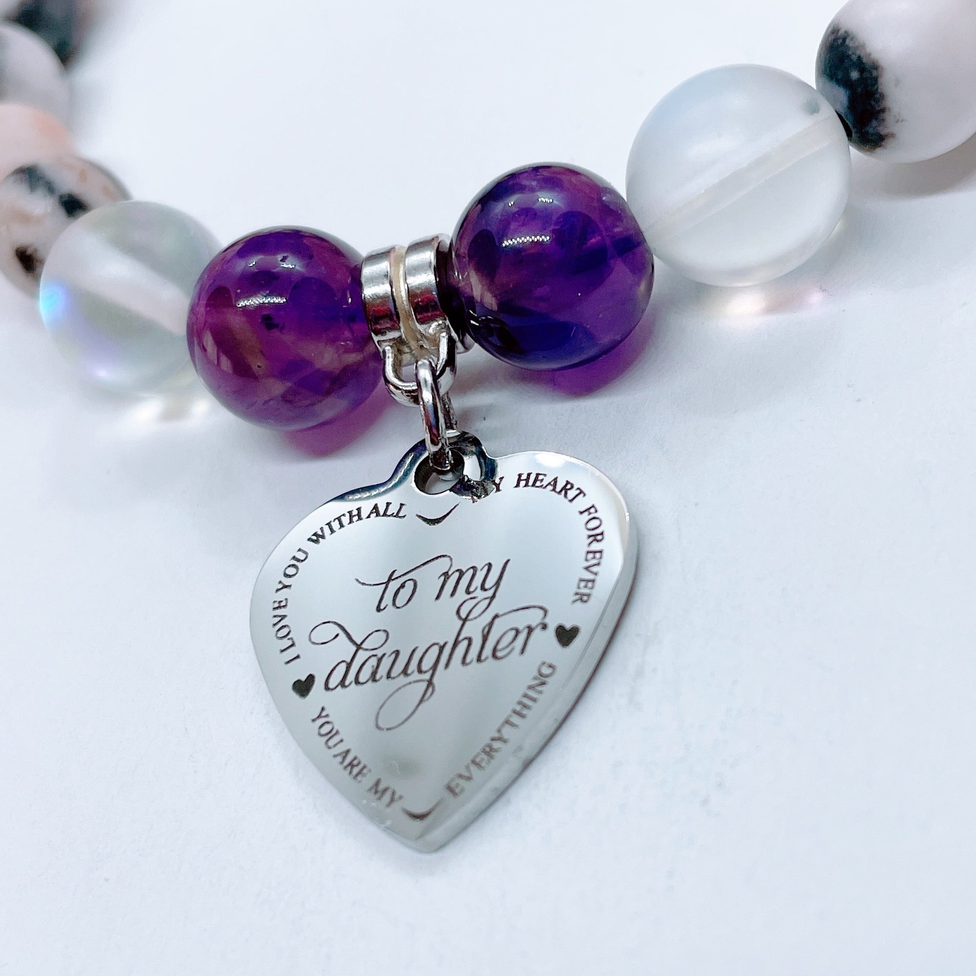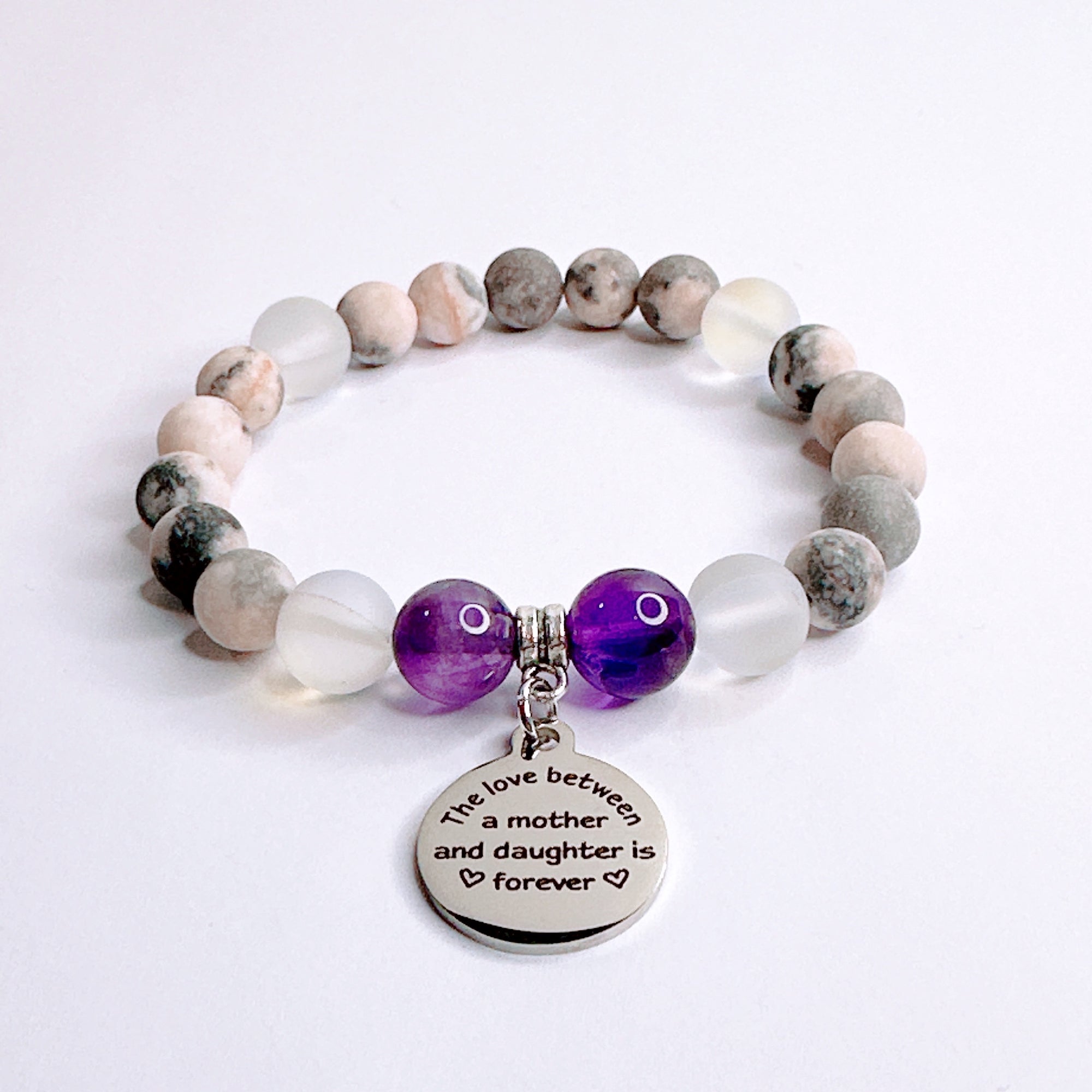 The Love Between a Mother & Daughter Classic Charm Bracelet Amethyst