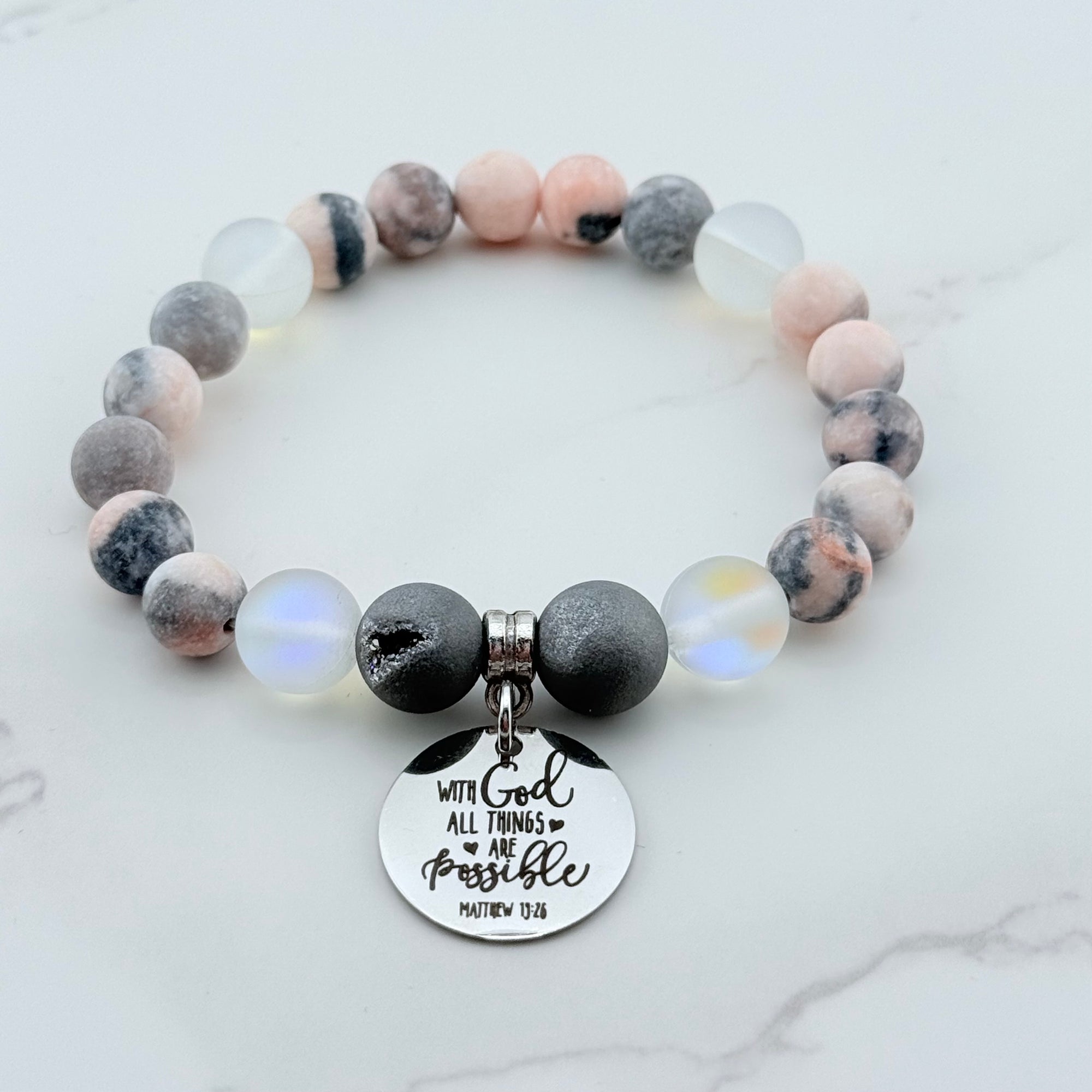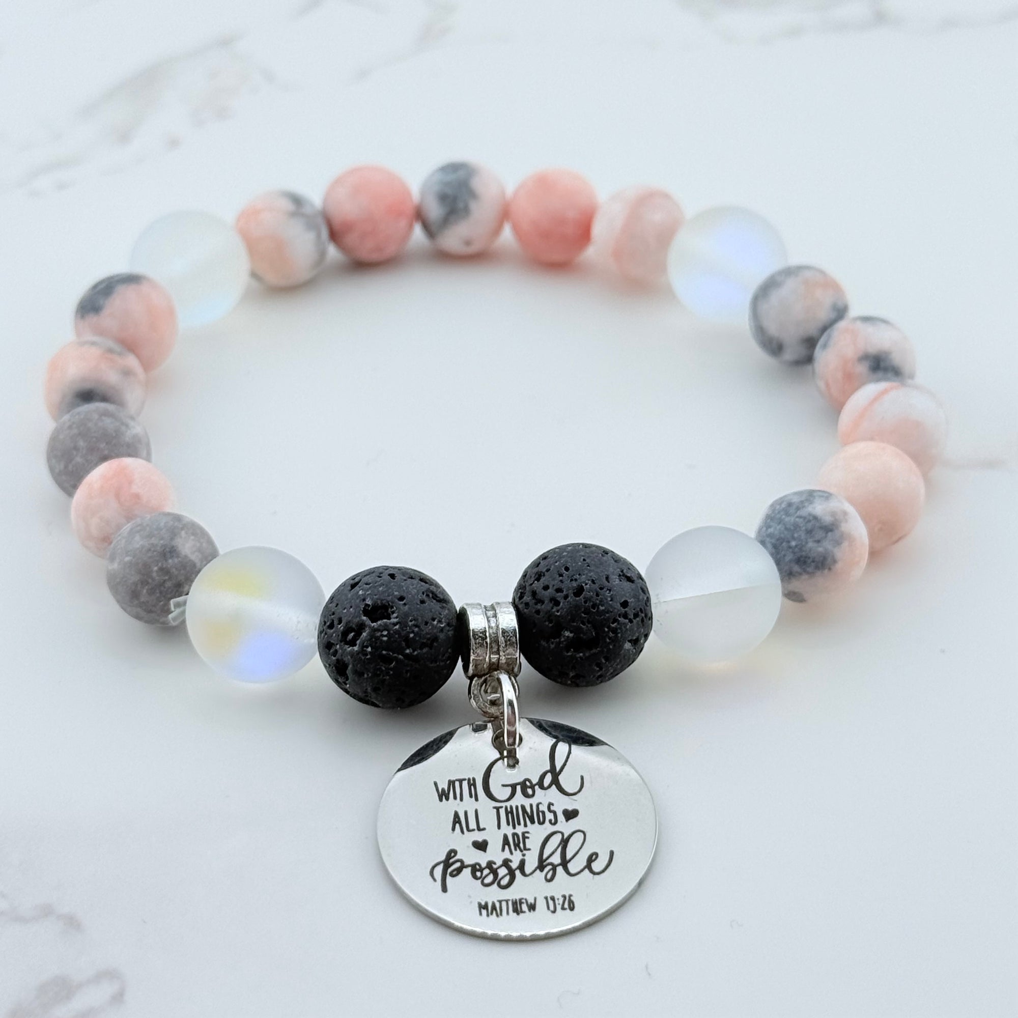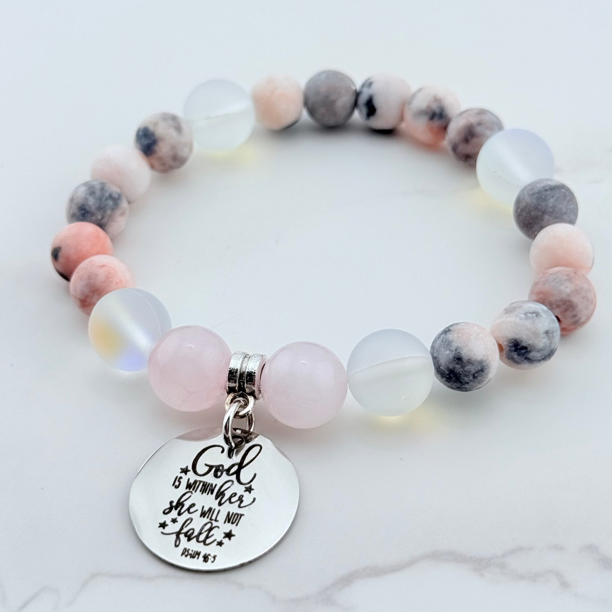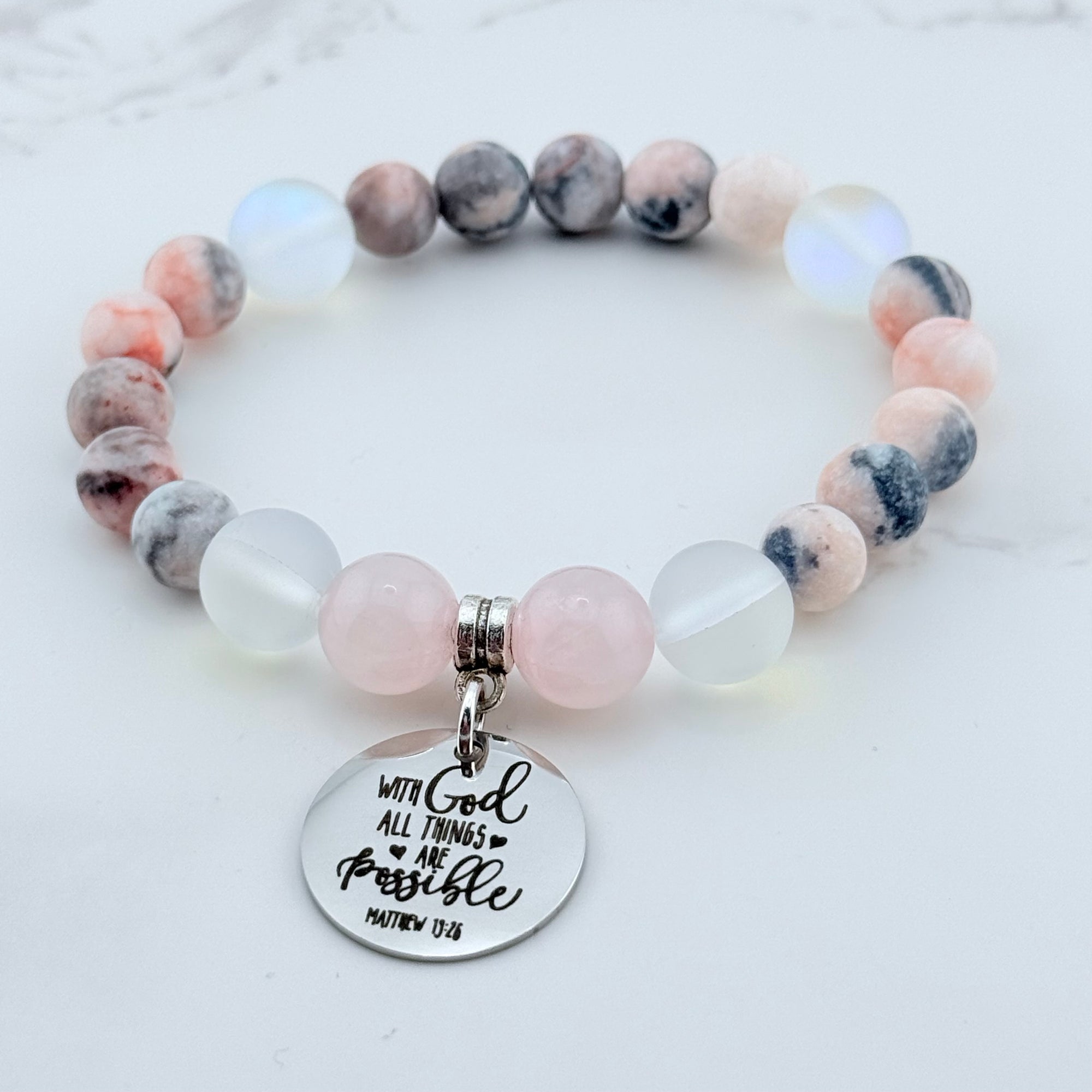 I Can Do All Things Through Christ Who Strengthens Me Classic Charm Bracelet Rose Quartz