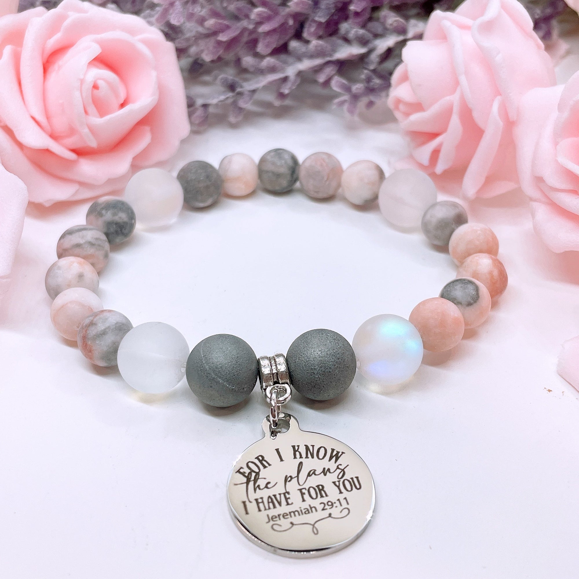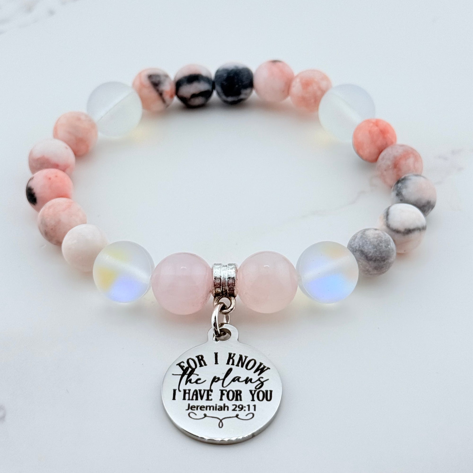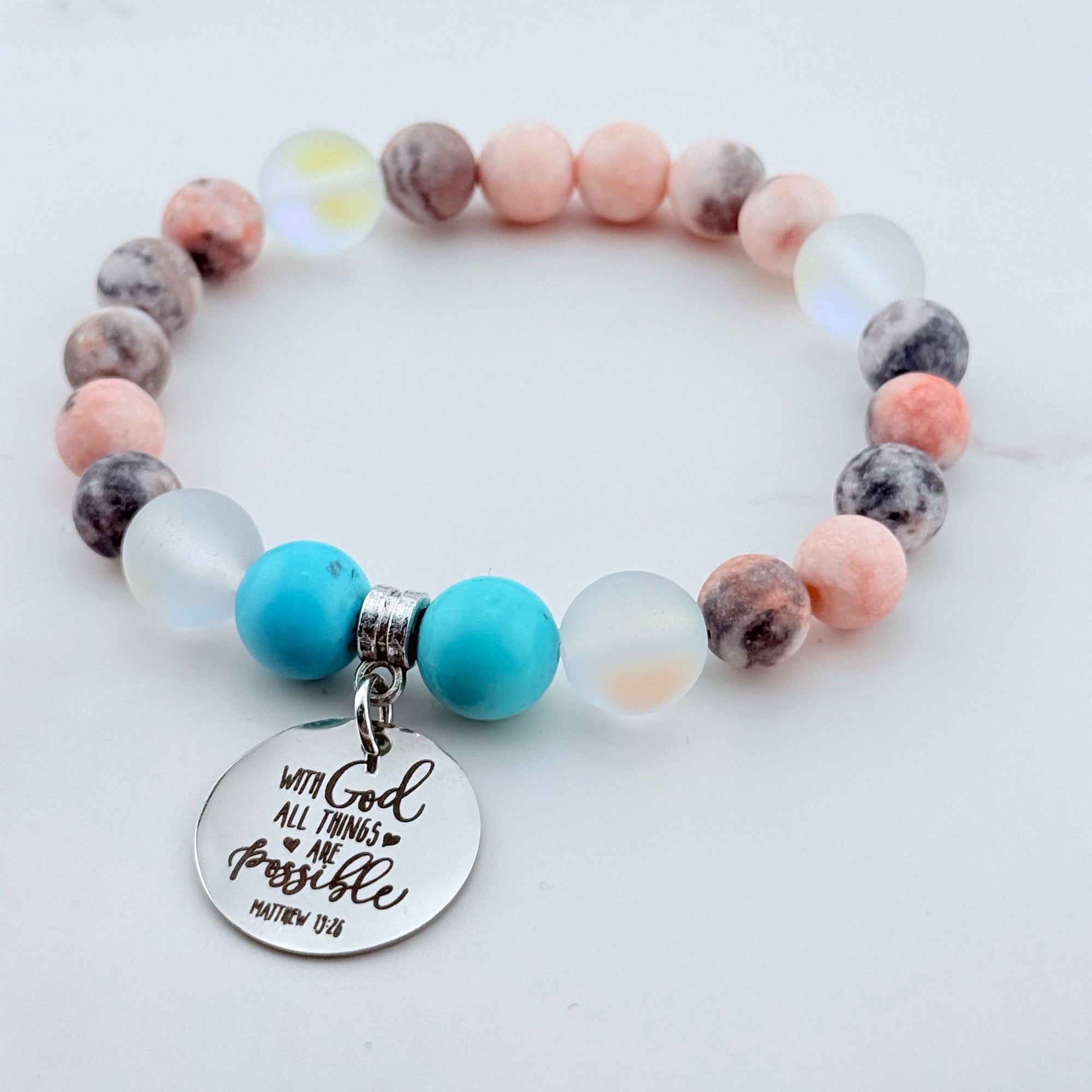 I Can Do All Things Through Christ Who Strengthens Me Classic Charm Bracelet Rose Quartz