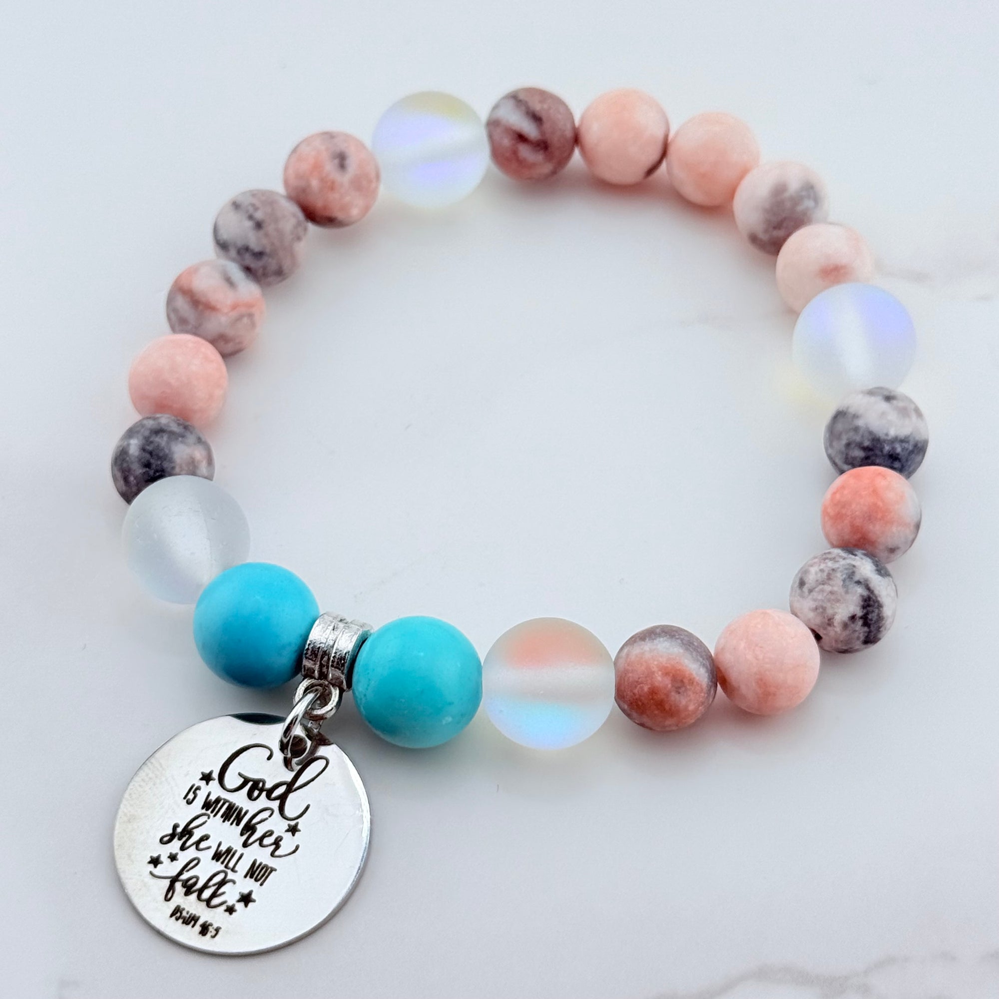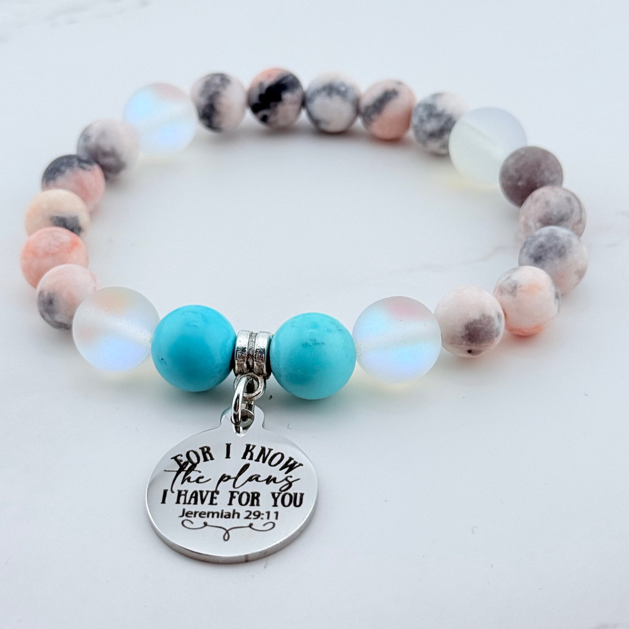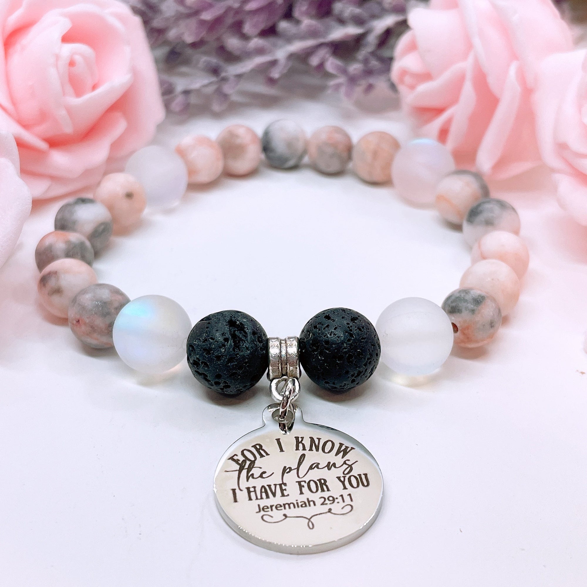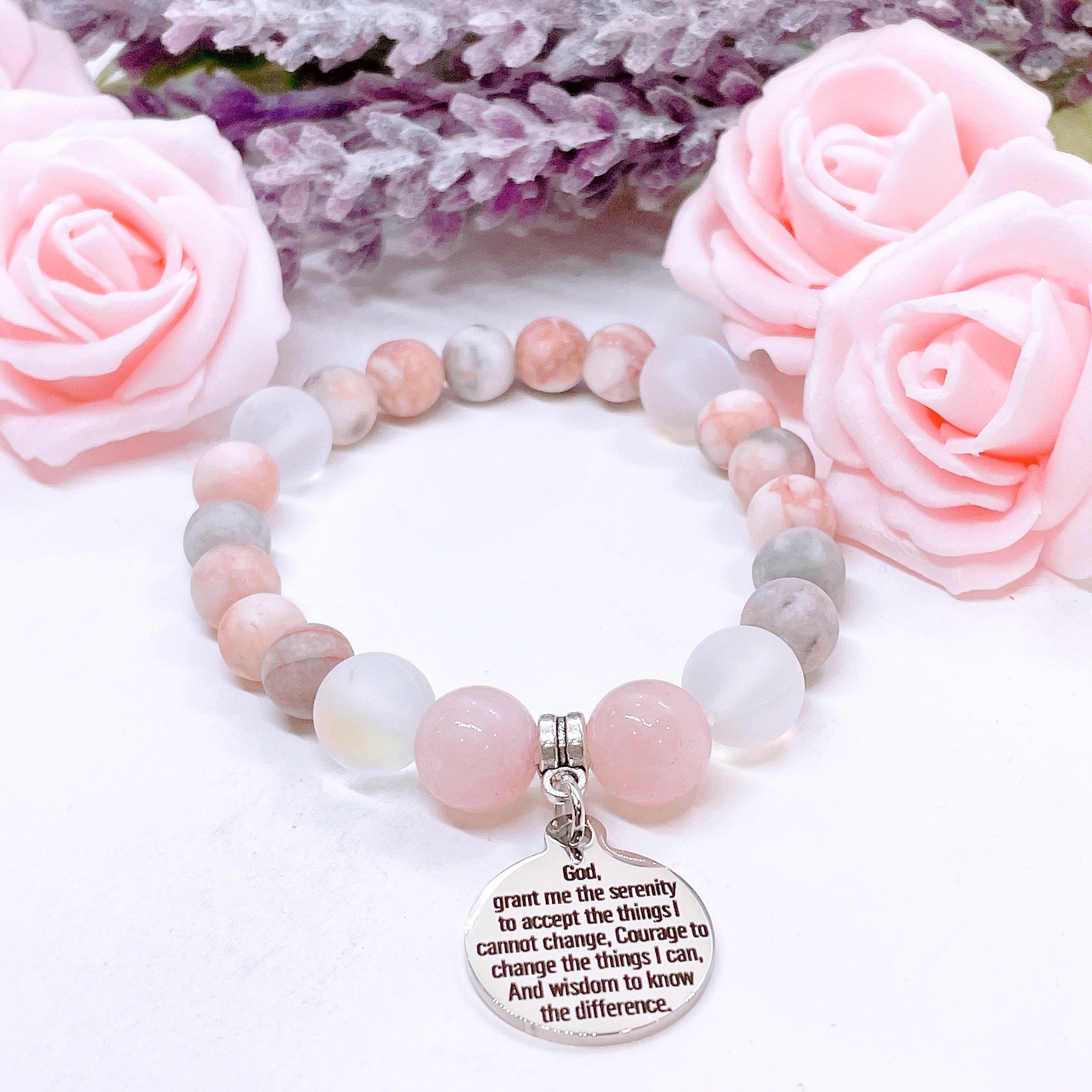I Can Do All Things Through Christ Who Strengthens Me Classic Charm Bracelet Rose Quartz