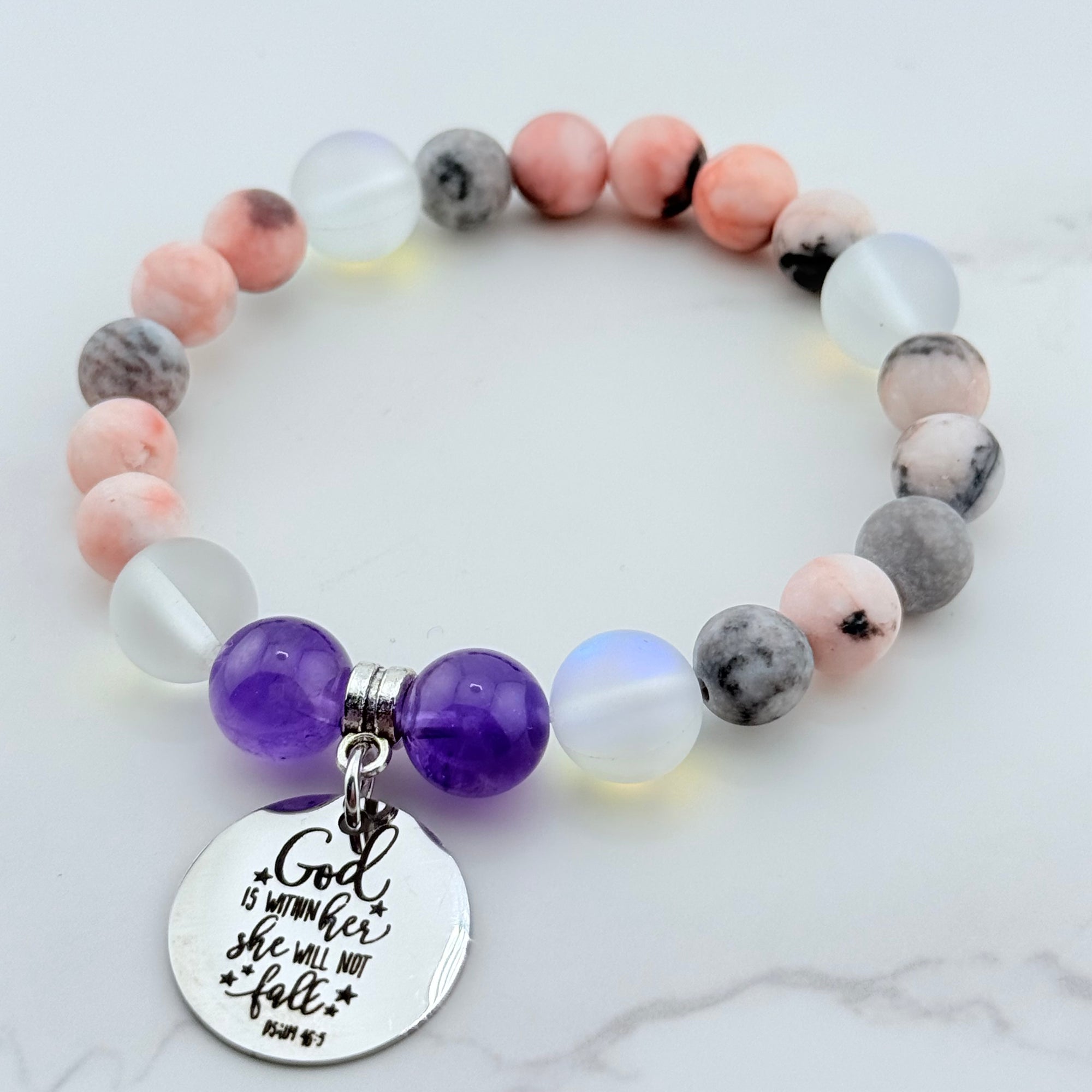 God Is Within Her She Will Not Fall Classic Charm Bracelet Amethyst