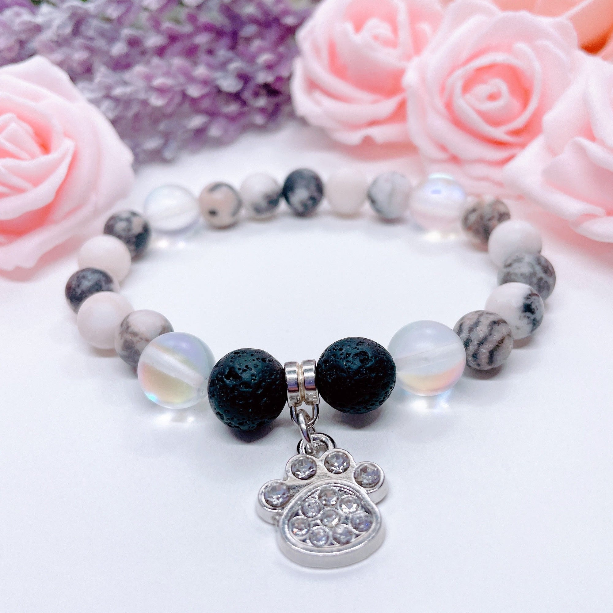 Rhinestone Paw Classic Charm Bracelet Amethyst