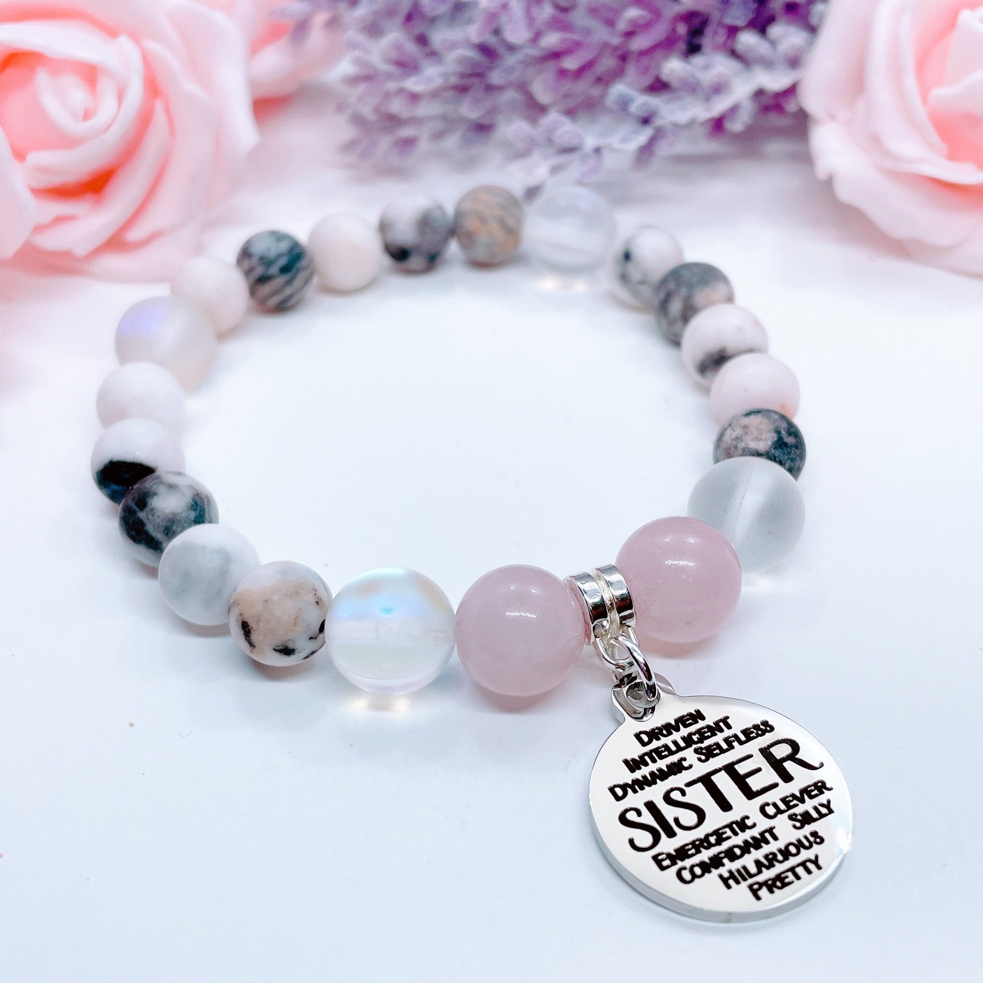Badass Mom Classic Charm Bracelet Rose Quartz