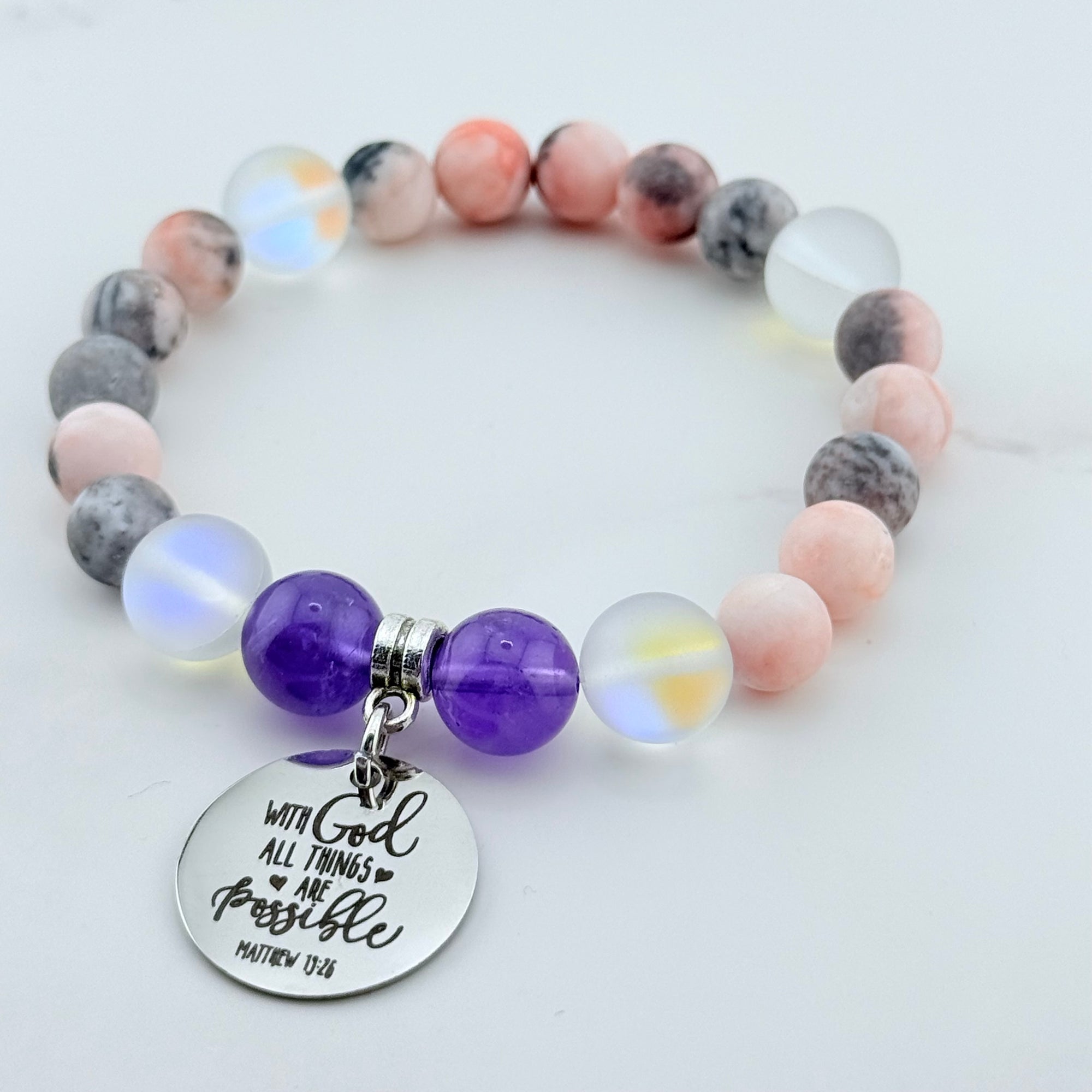 With God All Things are Possible Classic Charm Bracelet Amethyst