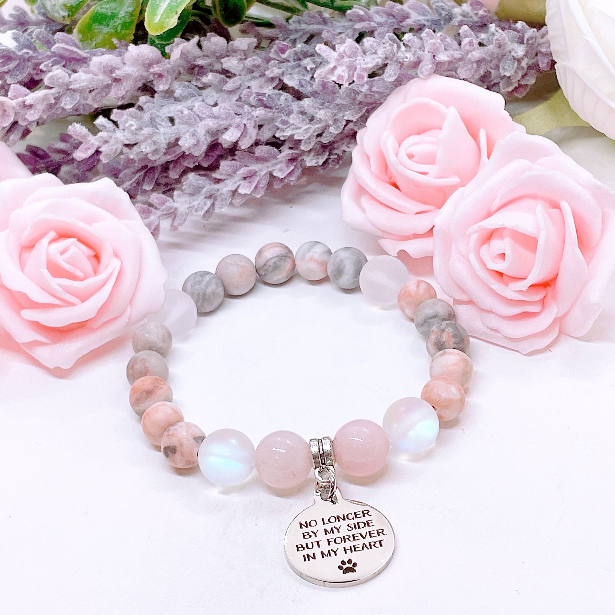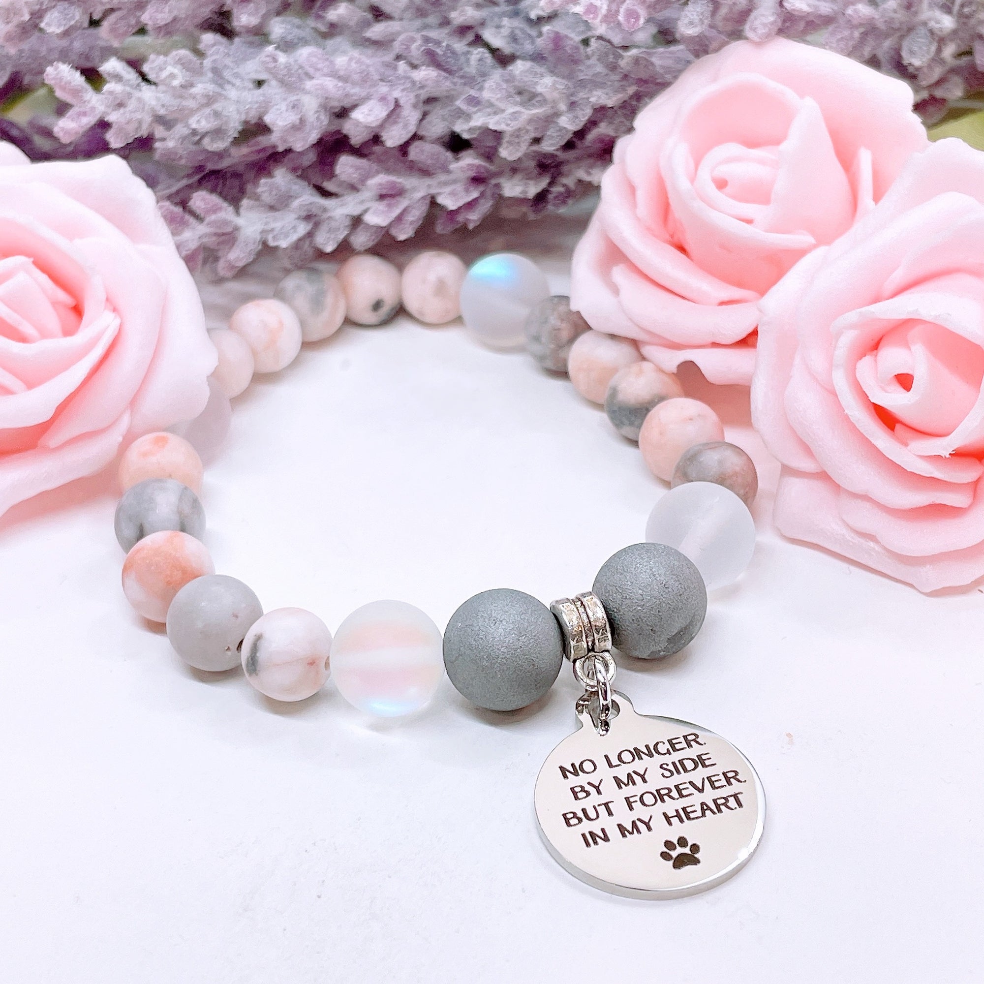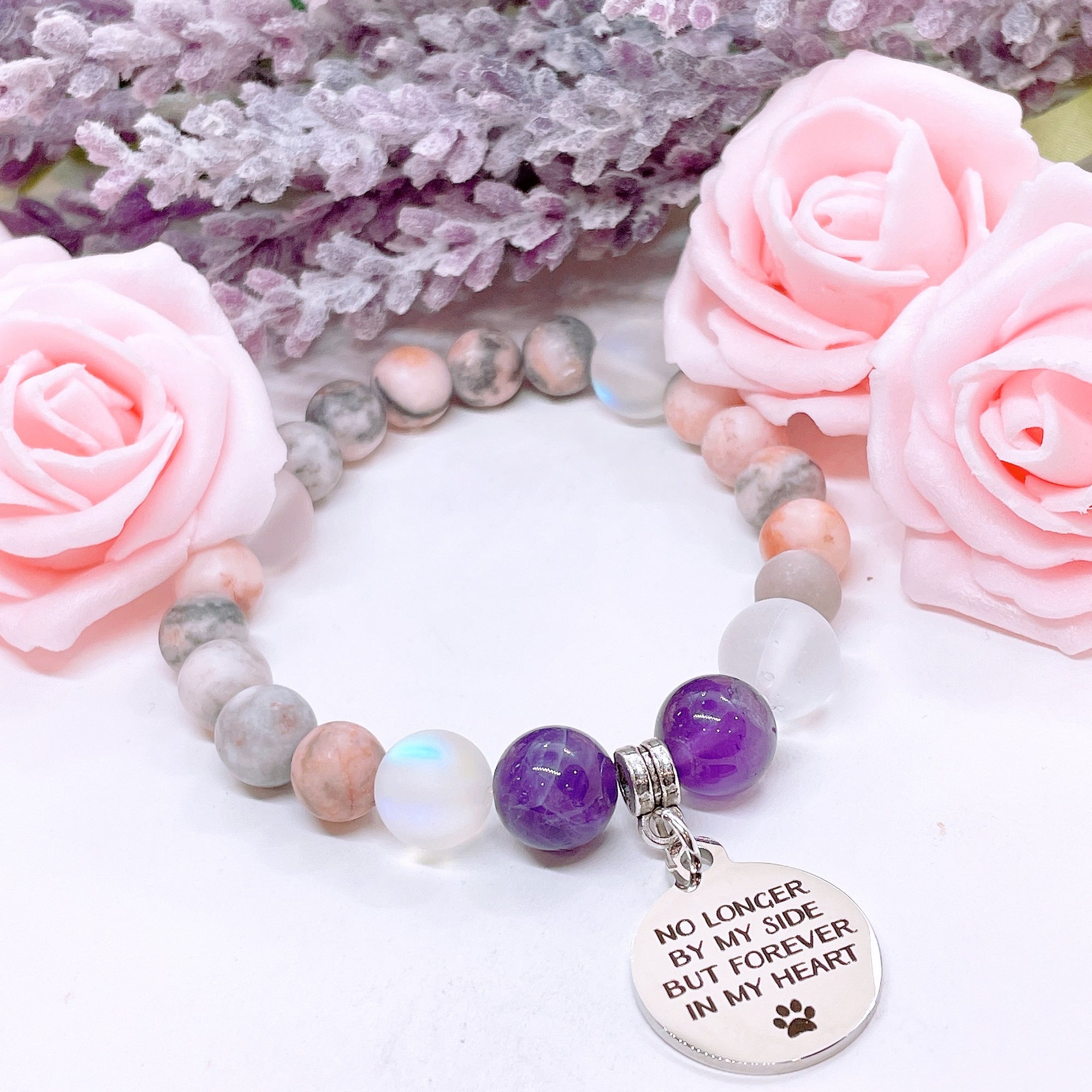 No Longer By My Side but in My Heart Forever ( Pet Paw) Classic Charm Bracelet Amethyst
