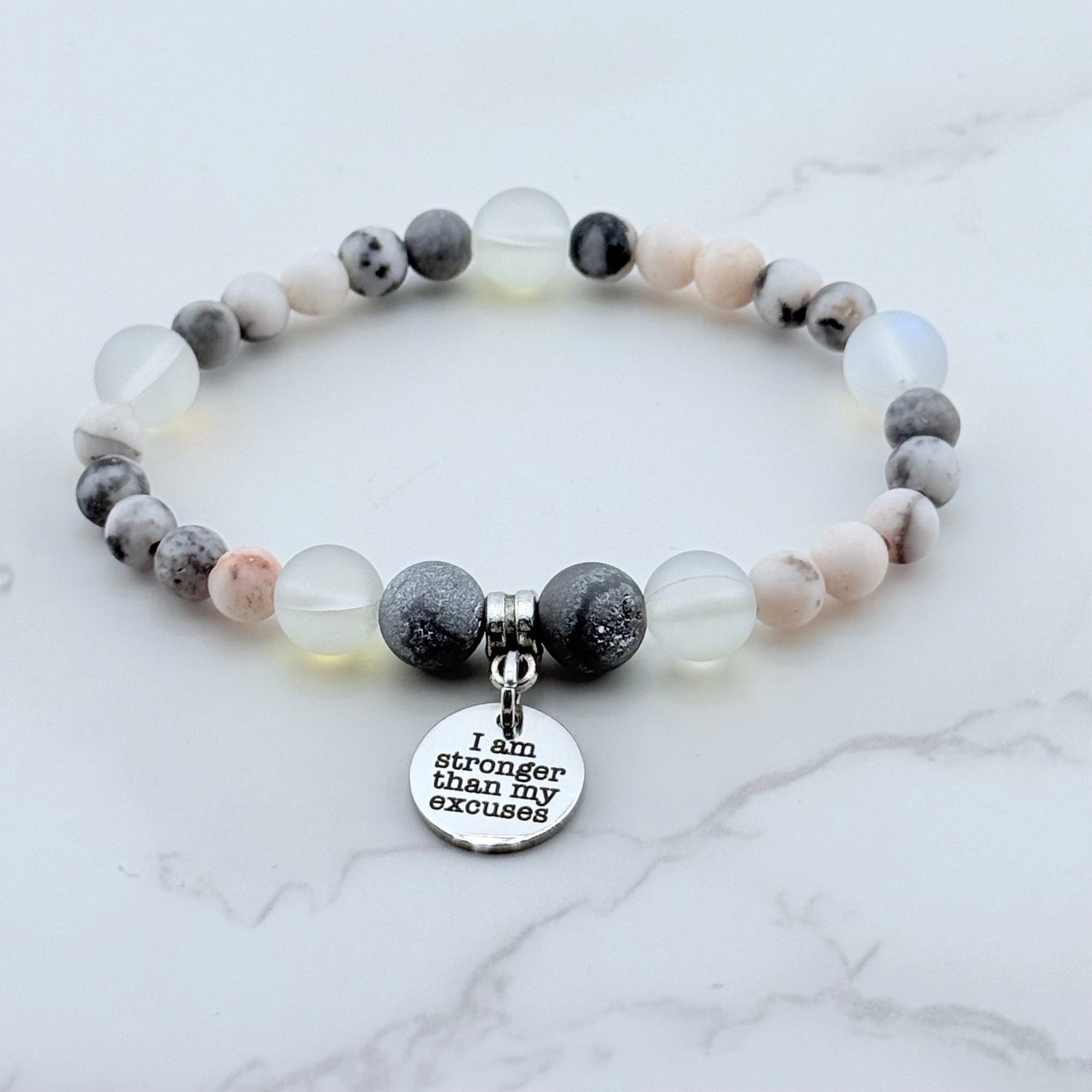 I am Stronger than My Excuses Companion Charm Bracelet Druzy