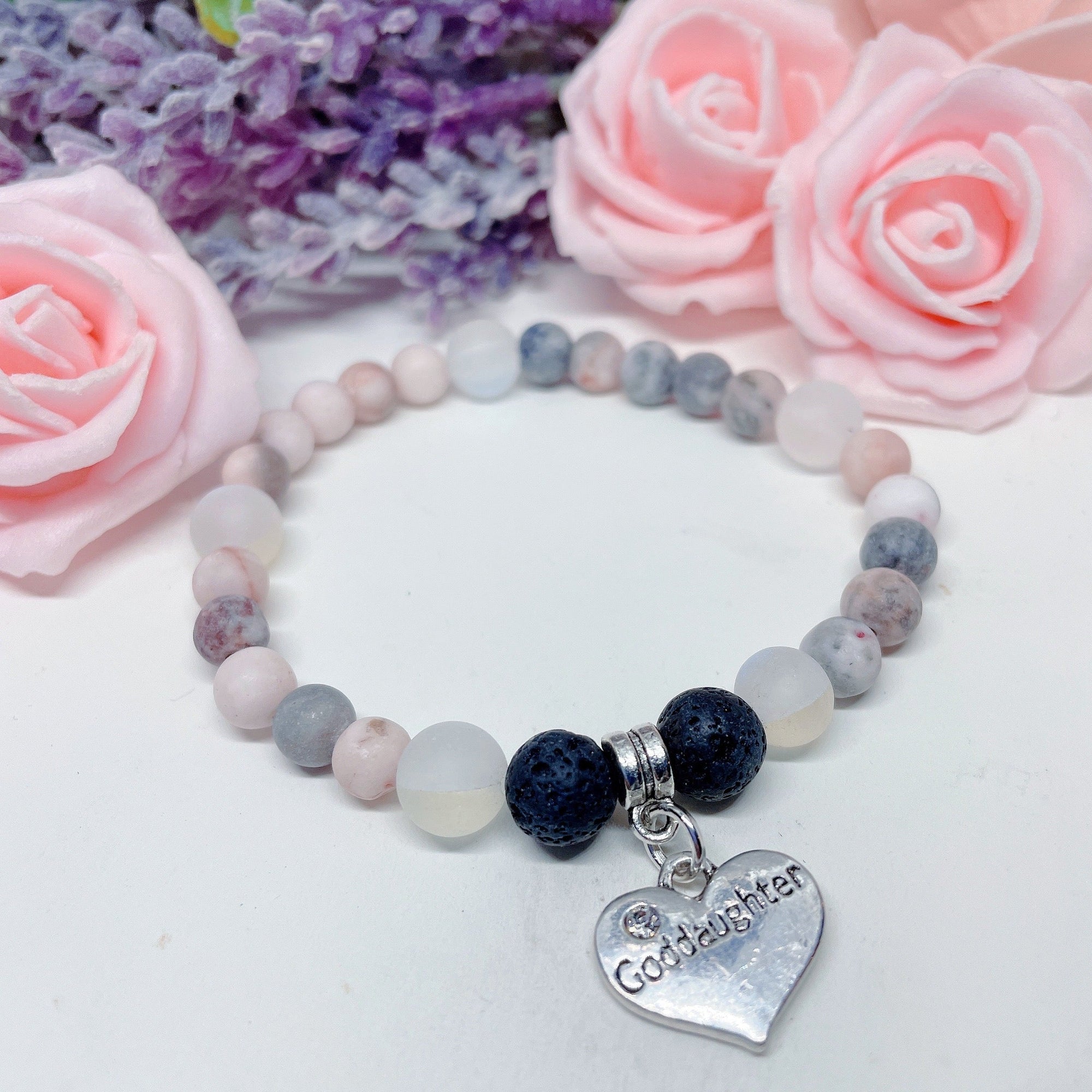 Granddaughter Heart Companion Charm Bracelet Rose Quartz
