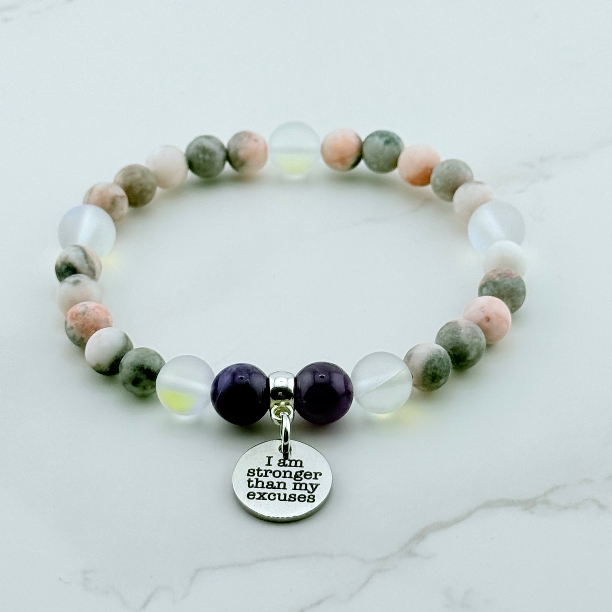 I am Stronger than My Excuses Companion Charm Bracelet Amethyst