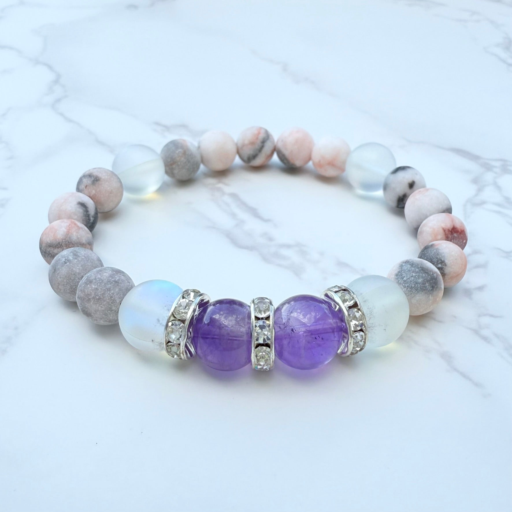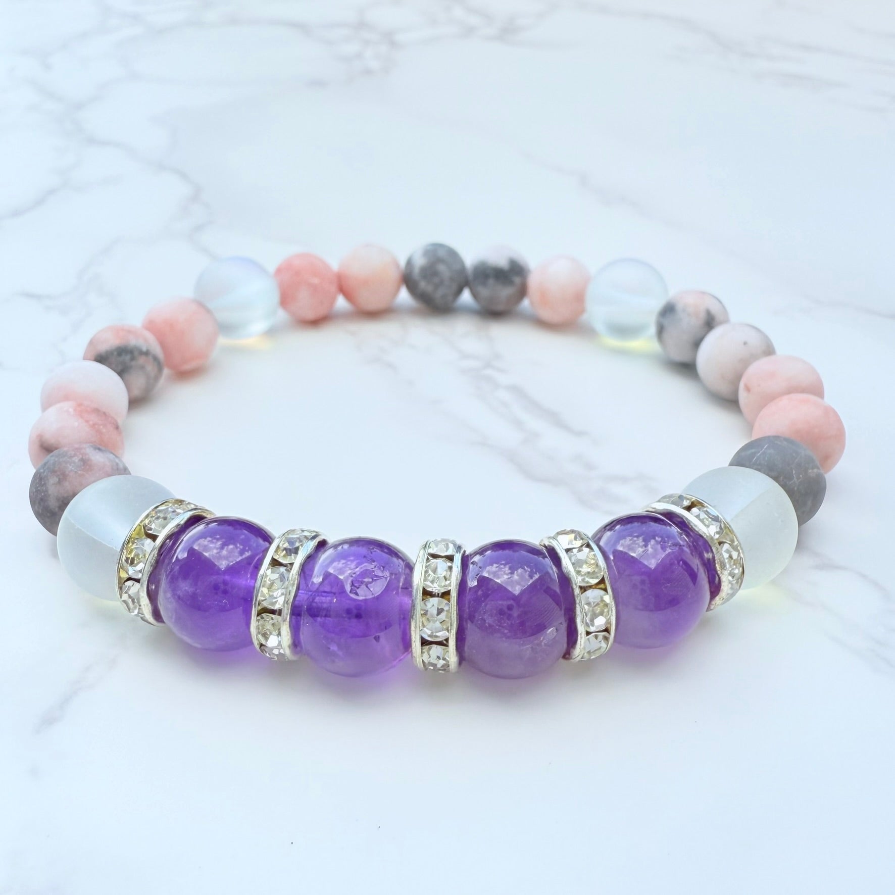 Whenever stress, anxiety, fear, or procrastination would rise up, I would pause, touch each Pink Zebra Jasper bead, and count backwards: 5-4-3-2-1.