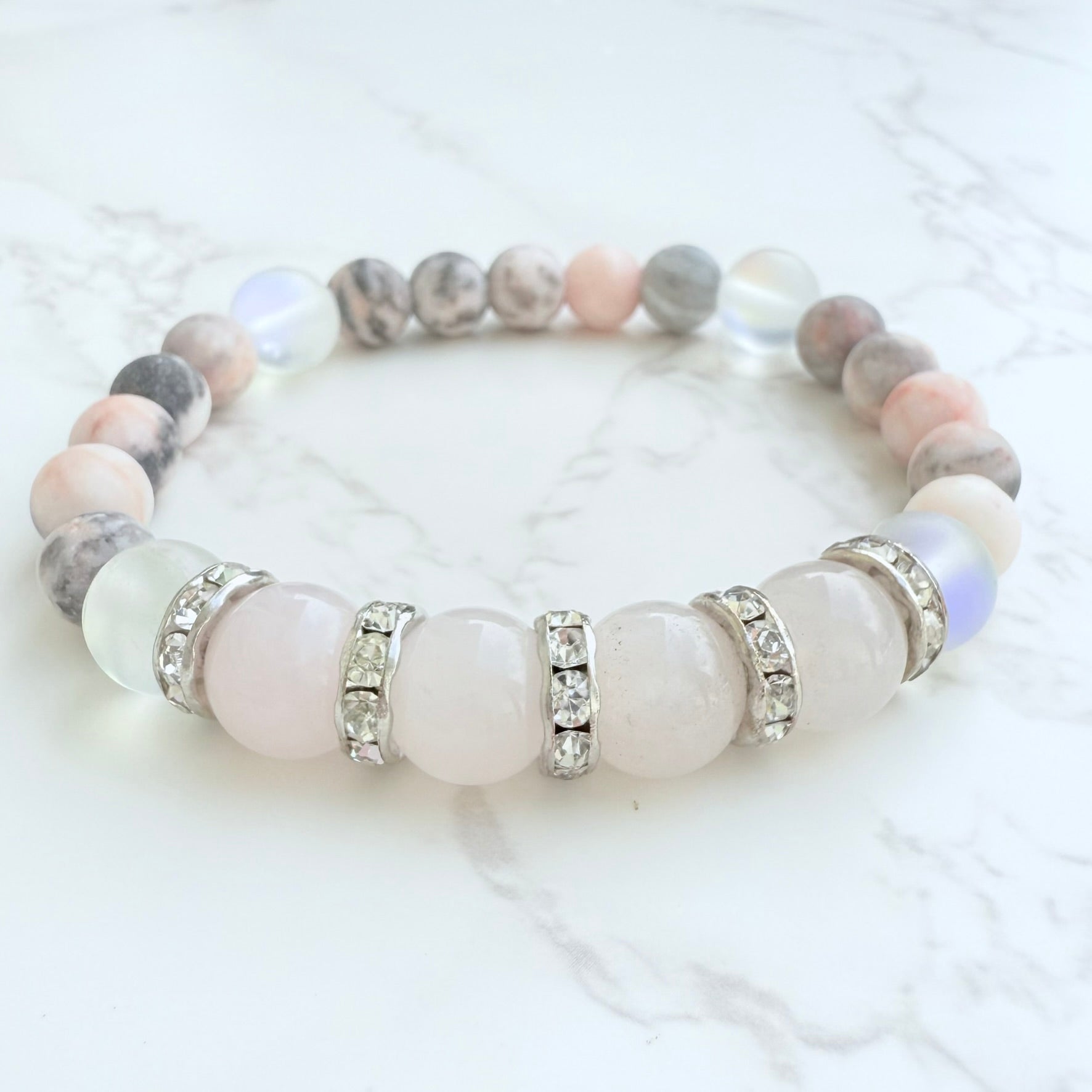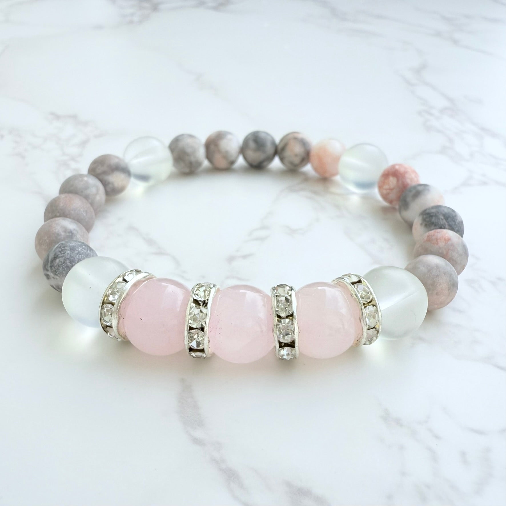 One day, I created a bracelet using soft pink and neutral stones, spacing out 5 beads as a visual and physical reminder of the 5 Second Rule: count backward from 5… breathe… and choose a better response. But more than that, each bead became a reminder to pause and lean into prayer — to trust that God was with me in the pause, in the process, and in the healing.