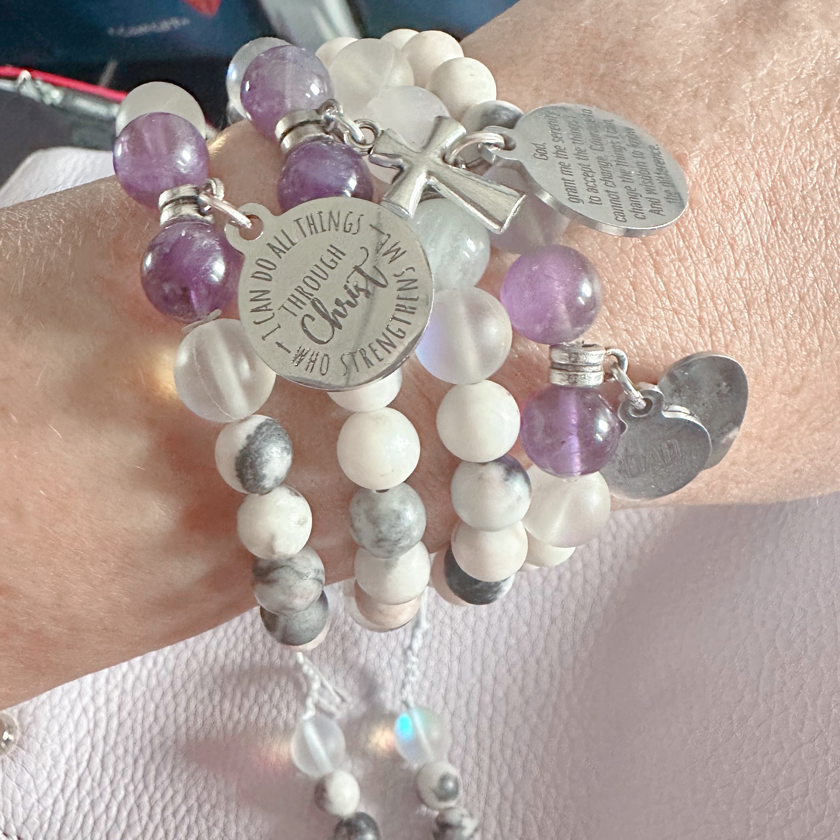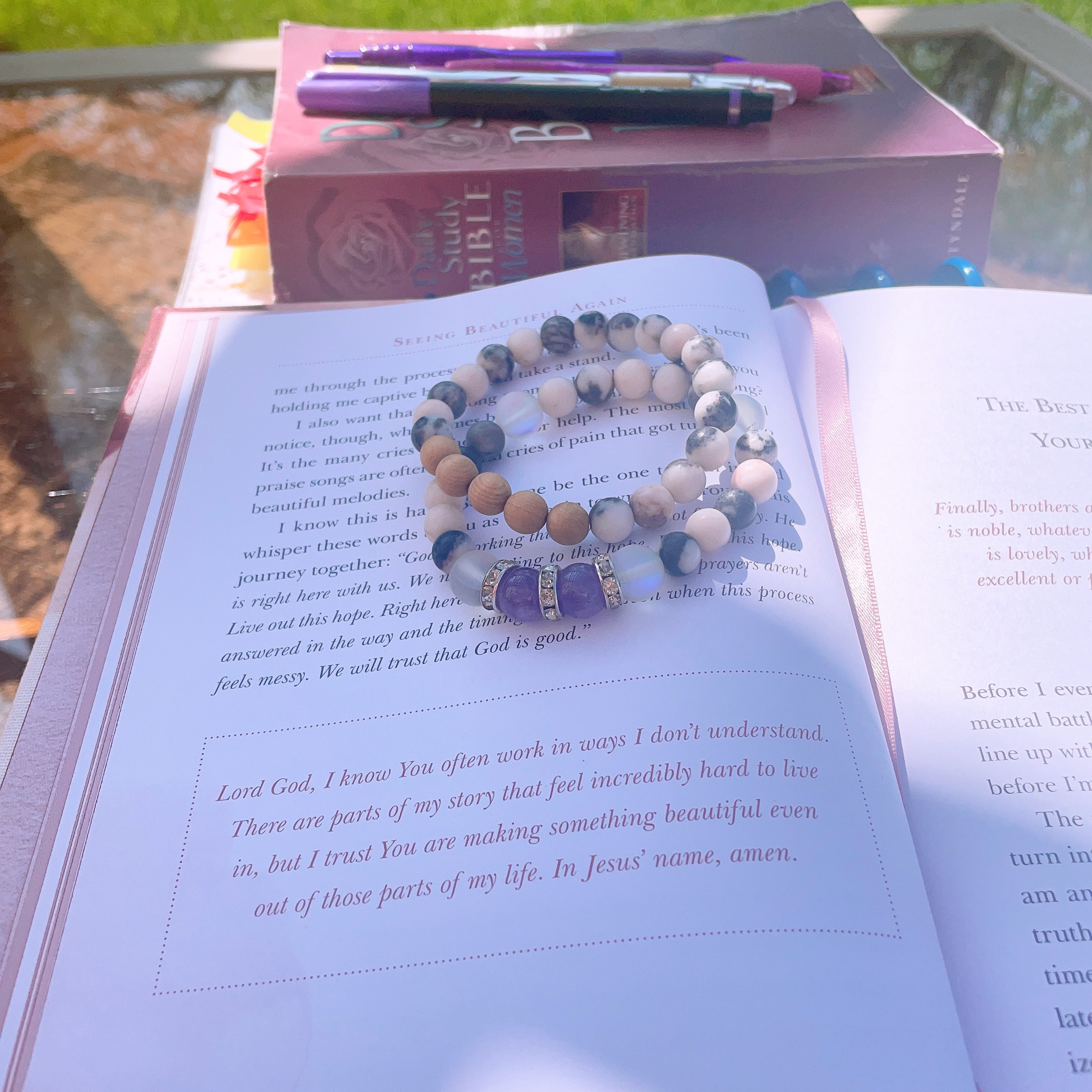 Each bracelet features a center stone — not for its meaning, but as a symbol of your faith. A reminder that even in the chaos, God is near — guiding, comforting, and strengthening you.